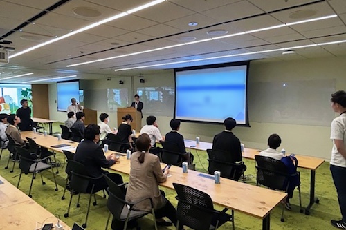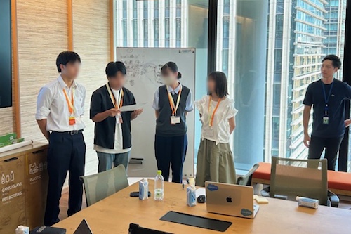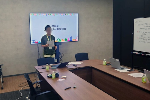 1日目と同じチームで、スタートアップの起業家目線になって「身の周りの課題」に目を向け、その課題を解決するビジネスアイデアを検討して提案しました。預金に関する新しいサービスや、睡眠の質・睡眠時間の確保に関するアプリ、スマホ使用時間を減らすアプリなど、デジタルネイティブ世代の発想が盛りだくさんでした。社員の方からは「スタートアップと同じ思考でビジネスを考えている」と驚きの声も上がりました。