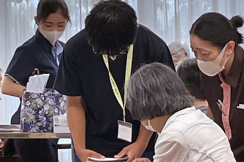 介護職について学び、デイサービスで働く育児中の職員と意見交換!