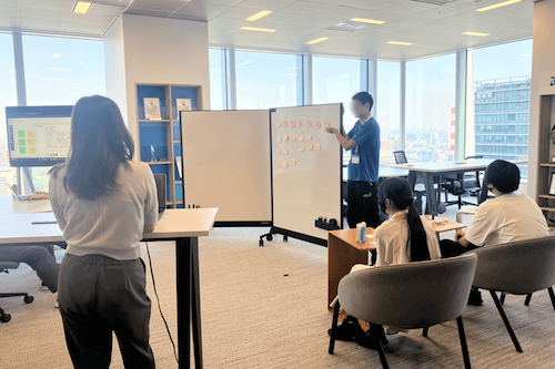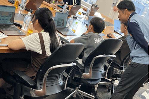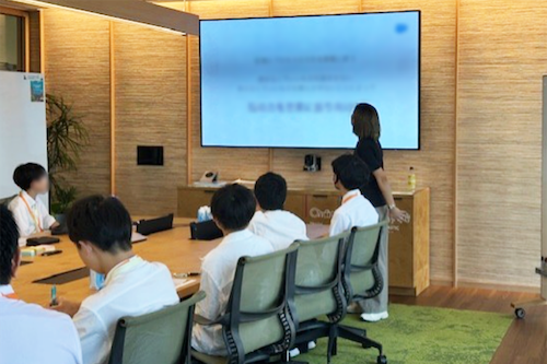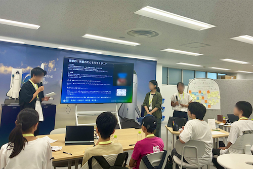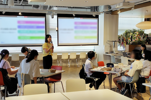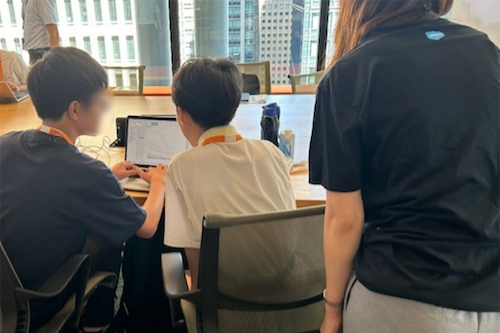 職場見学ツアーを行った後、AIの仕組みや活用方法について説明を受け、取扱う際には、はっきりとリクエストする、情報を批判的に捉える姿勢、個人情報の取扱いに注意すること等が大切であると学びました。その後、課題を解決するためにAIができること、役立つことを整理し、マウス操作で実際にAIエージェントを作る体験をしました。AIを使用した経験がある中高生も多い中、「仕事としてどう活用していくか」などのイメージが膨らむプログラムでした。