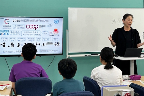 2日目は、日本の食品ロスを学ぶことから始まりました。年間464万トンもの食べ物が廃棄される現実に参加者は驚き、パルシステムのフードロス削減の活動に聞き入っていました。その後、「身のまわりでどんな社会課題を解決したいか?」をテーマにグループでディスカッションし、「ゴミのポイ捨て問題」には地面をカワイイ絵柄にして「禁止」ではなく捨てないよう「誘導」する、といった提案があるなど活発な議論が行われました。