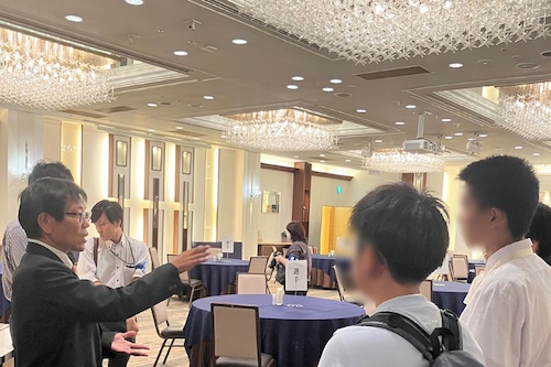 製薬の開発について学んだ後、グループに分かれて、架空の薬を例に、治験の過程を体験しました。グループごとに意見を出し合って検討し、候補の治療薬選定結果の発表を行いました。発表後の質疑応答では、他のグループに対して積極的に質問を投げかけ、活発に意見を交換していました。製薬会社や医療分野に興味を持つ参加者が多く、熱心にノートを取りながら学習していました。