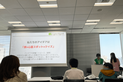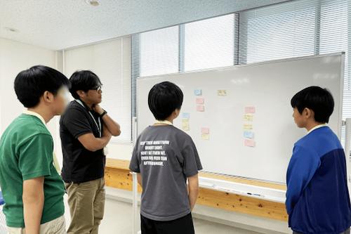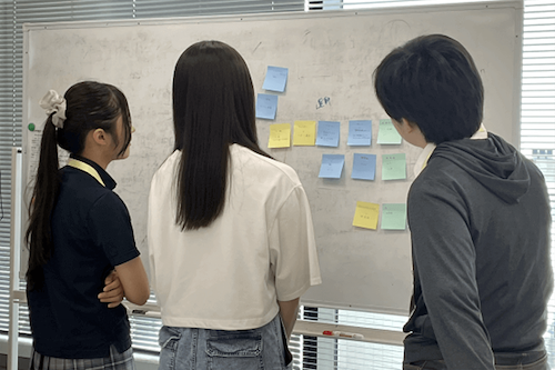 最初に実際にAIを操作してみて、質問に対する回答の調整をする体験をしました。AIを用いてどんなサービスが作れるかというテーマについて、3つのチームに分かれてディスカッションをしました。結果、「観光プランの案内」や、朝起きれないという困りごとに対する「レム睡眠ノンレム睡眠を感知して目覚めを促す」というアイデアについて発表を行い、AIを活用した提案の体験ができました。