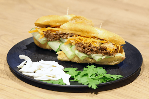 2日目は、ベトナムの「バインミー」に合わせるソースの開発を行いました。お店の客層からターゲットを考えるところから始めて、色々な調味料の調合と味の確認を重ねて完成させ、社員の方へプレゼンしました。なんと今回開発したソースが期間限定でメニューに採用されることになり、中高生は自分たちの仕事が形になる喜びを体験できました。