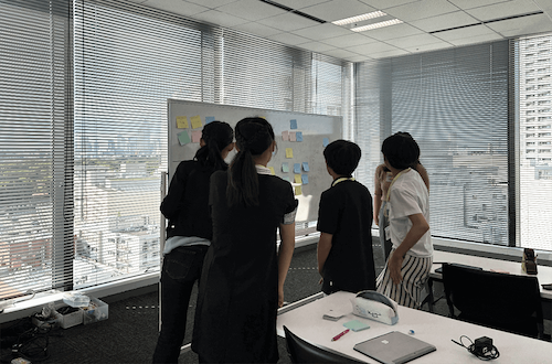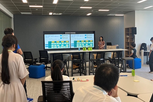 デジタルバンク「UI銀行」の課題やシニア層のデジタルサービス利用について説明があり、「シニア層に対してデジタルバンクを普及するには?」をテーマに、技術的・心理的観点から課題と解決策をグループでディスカッションしました。どのような施策でシニア層にデジタルバンクを浸透させていくか、アイデアを出し合い、社員の皆さんにアドバイスをもらいながらサービス企画としてまとめ、発表しました。