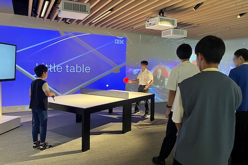 1日目は、自社で展開しているサービスの一例として、スポーツ向け分析システムの説明を受けました。卓球や野球、F1など様々なスポーツで、自動的に得点をカウントしたり、速度を計測する様子を見学しました。その後の座学では、IBMが目指す未来などを学び、デザインシンキングに取り組むための説明を受けました。最後は2日目に実施するデザインシンキングのテーマの発表と、その他のコンテンツが共有されました。